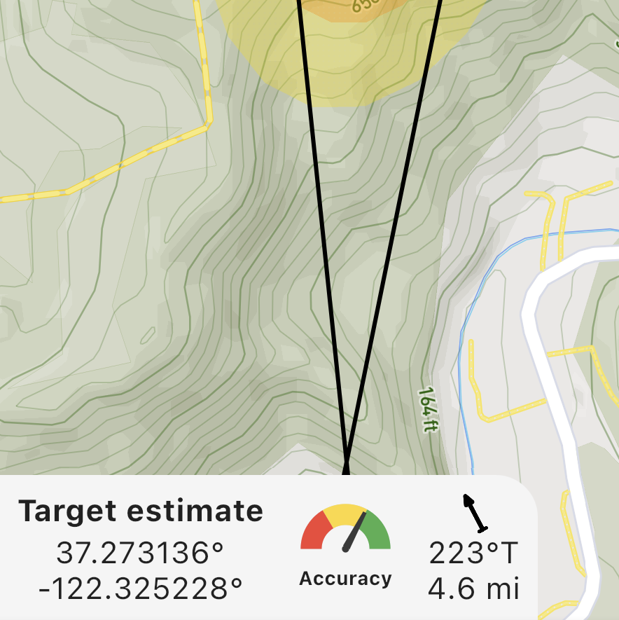 Reading display has been updated to more clearly indicate the quality of the reading. Quality here means how likely the heading of the line on the map is to the real heading from the observer’s position to the target. Since mobile phone compasses are sensitive to interference, these headings are not always accurate. Sometimes, they can be wildly inaccurate. This is called “compass error”.